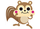 クリとかくれんぼが大好きなリス。森の中で元気に遊ぶ、かわいらしいキャラクターです。