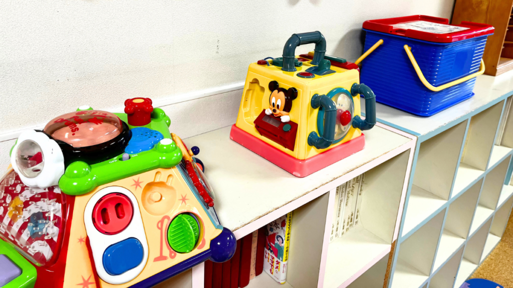 赤ちゃん向けのおもちゃもいくつか用意されていますが、個人的見解として、0歳の子どもが遊べるようなおもちゃはほぼなさそうです。