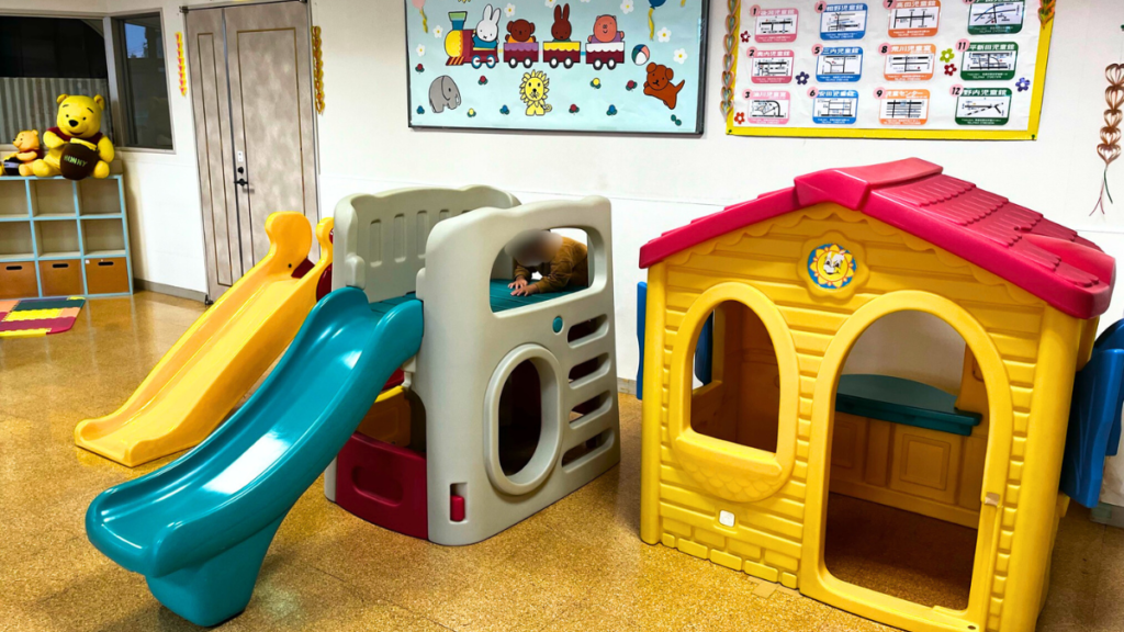 室内には絵本やプレイハウス、乗り物おもちゃ、大型ブロック、おままごとセット、滑り台など、未就学児~小学生低学年の子どもたちが楽しめる遊具やおもちゃが揃っています。